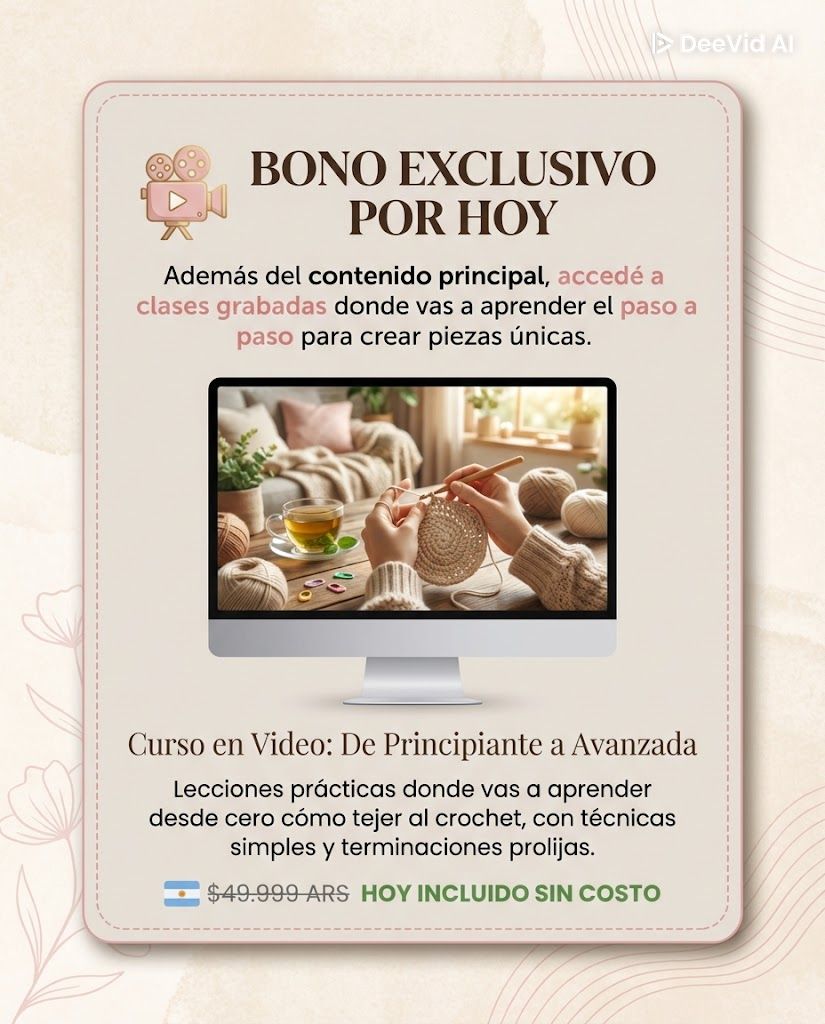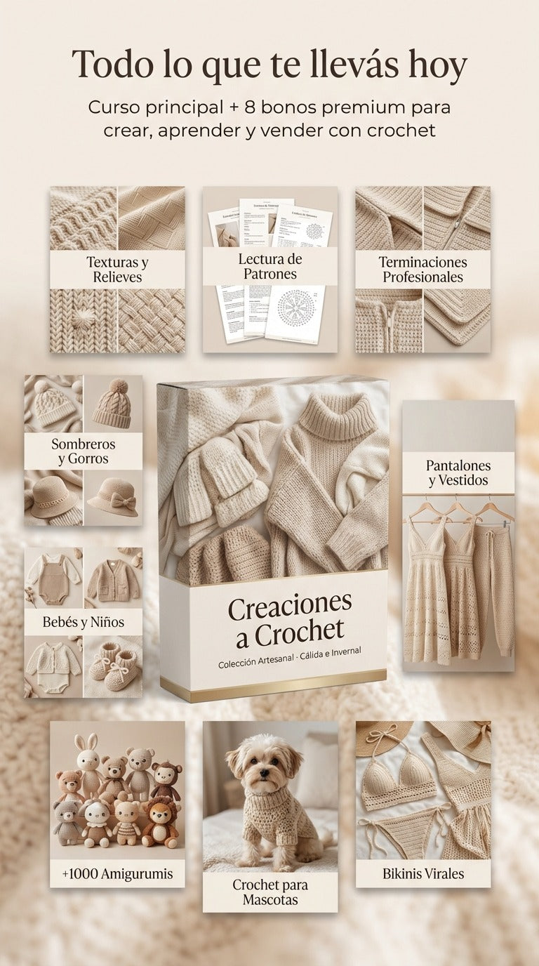 Curso completo de crochet + colección artesanal + bonos exclusivos 🎁